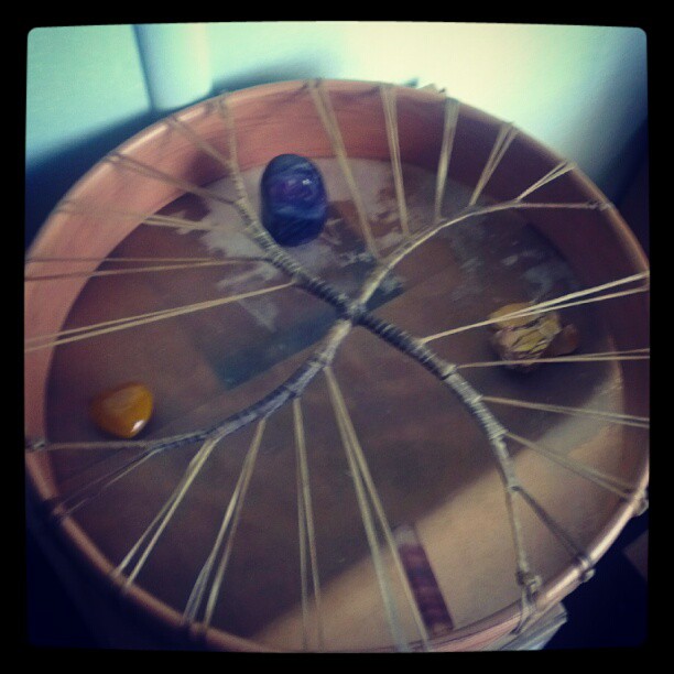 Last Sunday I joined friends in a Native American (style) drum making workshop. It was an interesting day, to say the least. But at the end of it, I came home with a gorgeous drum! Canadian Cedar hoop and Raw Deer Hide from wild Australian deer.