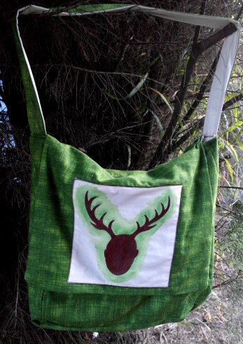 I made a gorgeous bag this weekend to house my ritual drum. And with the aid of a friend’s sewing machine, it turned out better than I could have hoped. I love it – it houses my drum and the beater separately, leaving room for more beaters to come. There is also room to place things found when taking it out and about to play. I emailed photos of the bag to my mother and explained what I had done, how it was fully lined and sewn, painted with a silohette of Herne on the front. “You are indeed [Nanna’s] girl!!” was her reply.