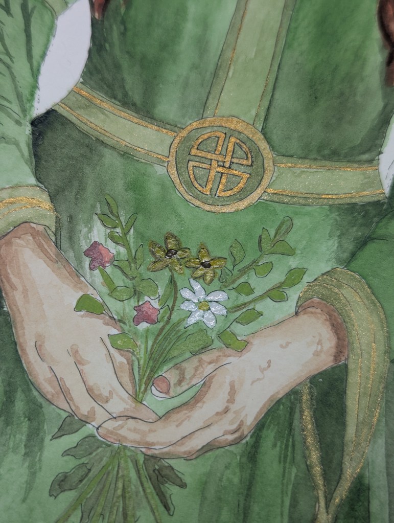 I recently felt called to draw Damara. I hadn’t touched my Kuretaki Gansai paints since last Christmas as I’ve been focusing on pen drawings, particularly because they’d translate into my new book quiet well.
